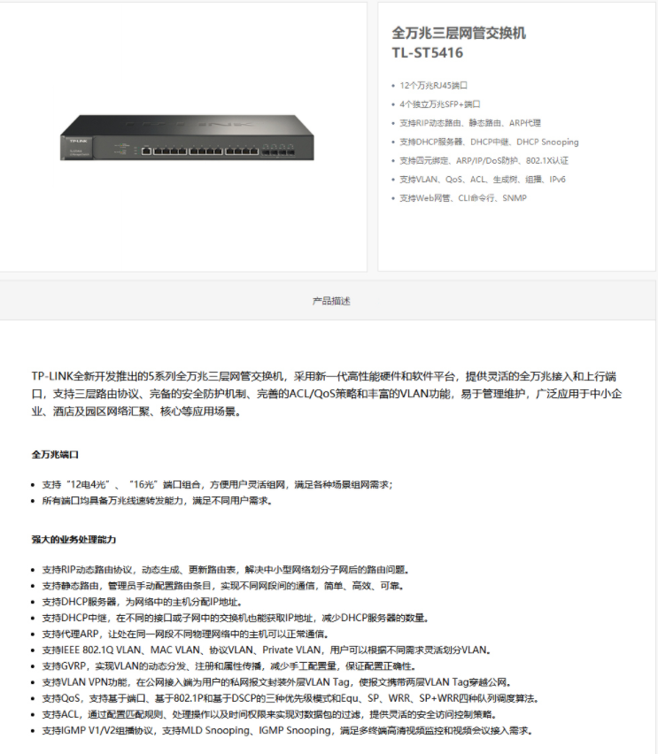 以太網(wǎng)交換機(jī)普聯(lián)/TP-LINK16口全萬(wàn)兆核心交換機(jī)三層網(wǎng)管型TL-ST5416/臺(tái)