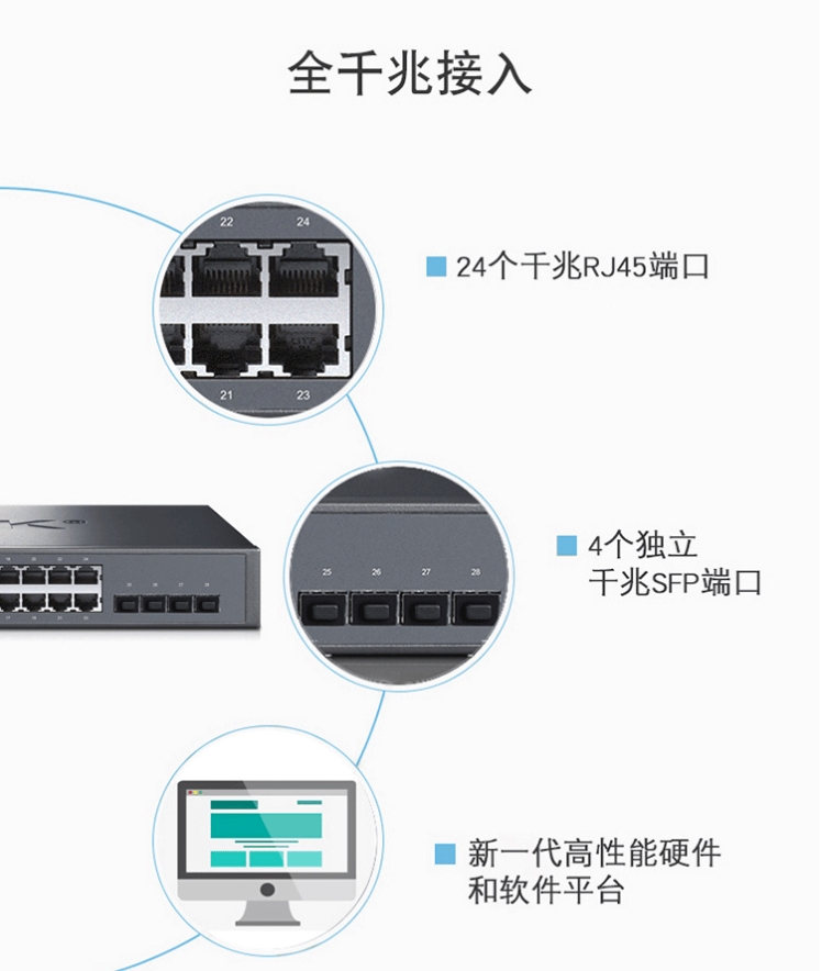 以太網(wǎng)交換機(jī)普聯(lián)/TP-LINK4口千兆企業(yè)級(jí)商用核心網(wǎng)管交換機(jī)TL-SG3428/臺(tái)